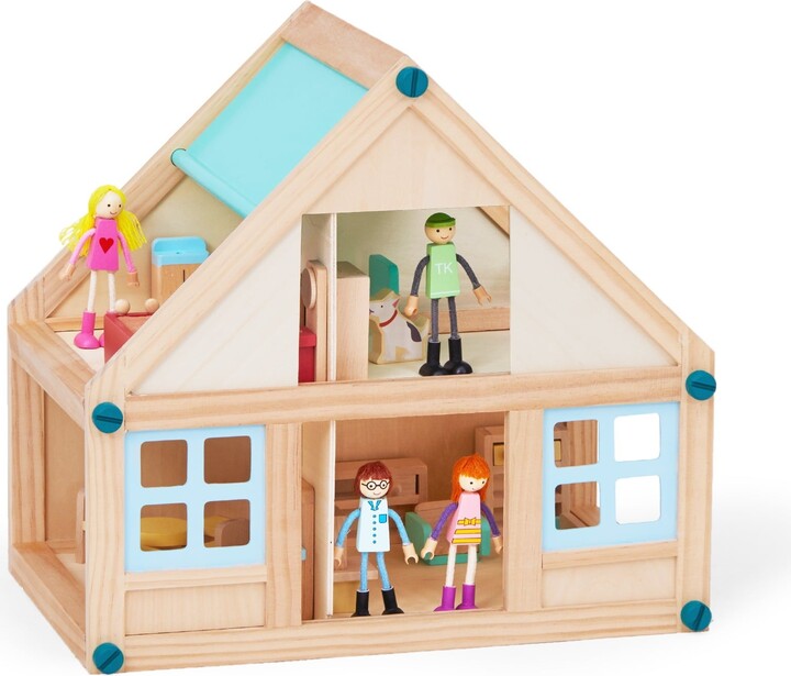 Global Pronex Kids Buildable Furnished Wooden Dollhouse for 3.5" Dolls