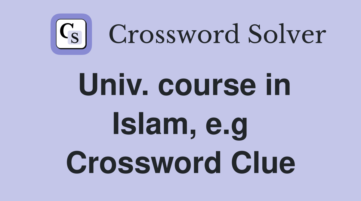 Univ. course in Islam, e.g. Crossword Clue Answers Crossword Solver