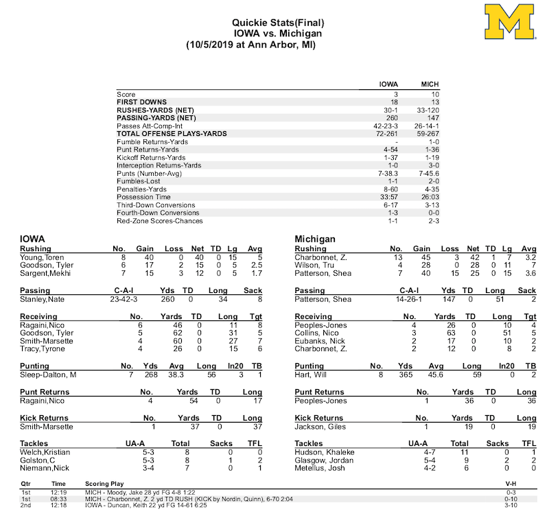 Michigan 10, Iowa 3 mgoblog