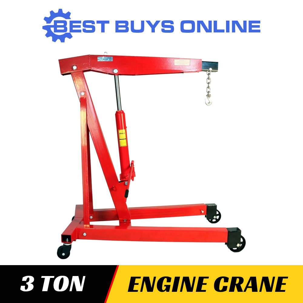 Engine Crane 3 Ton Hoist Lifter 3000 kg Non Folding Heavy duty Lifting Engine Crane Lifter Lifting capacity of 1000/750/500/250kg dependent on jib length. Engine hoists, also known as engine cranes or floor cranes, are industry standard pieces of equipment for lifting engines out of and into vehicles, and moving them safely around a garage. Engine cranes are lifting machines that are designed to help you lift heavy engines out of cars or move heavy loads. Engine Crane Lifter.