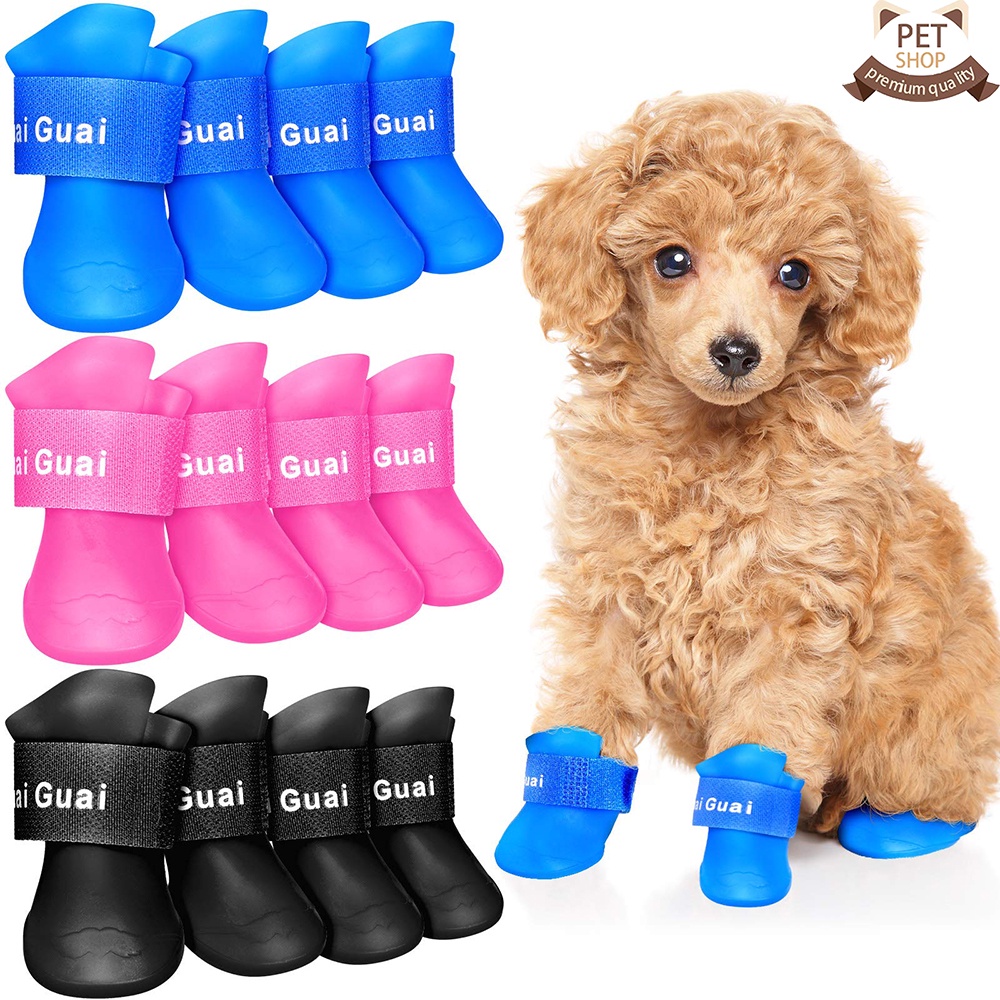4 Pieces Waterproof Dog Boots Shoes Puppy Candy Colors NonSlip Rain Shoes Pet Boots Shopee