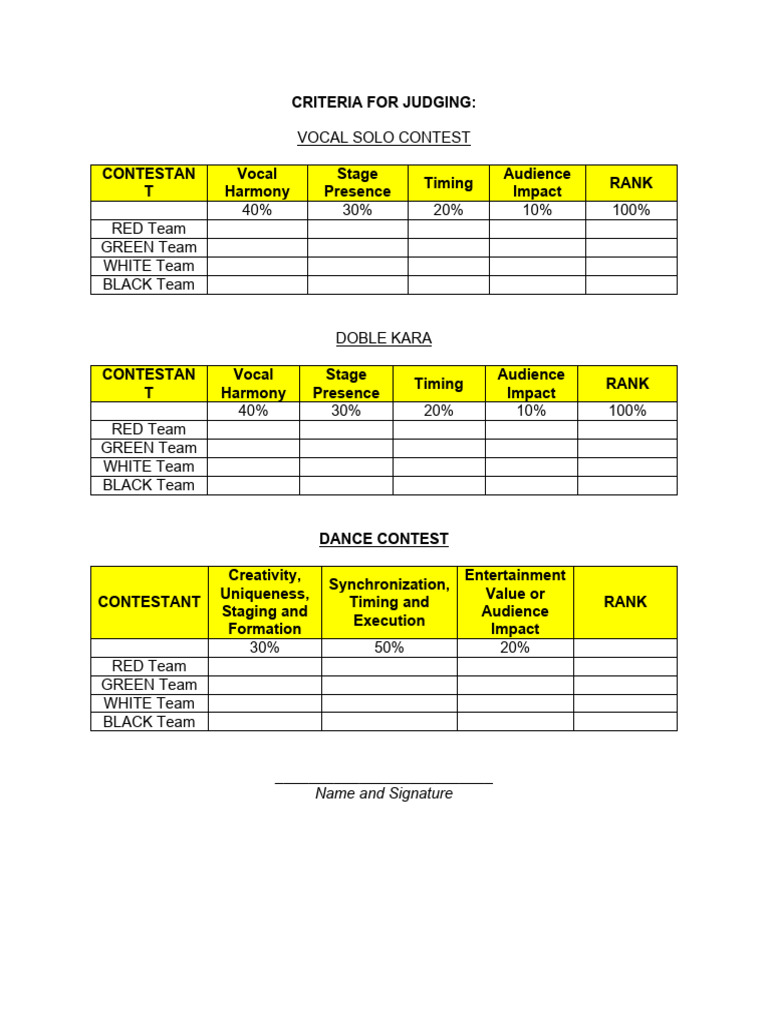Judging Criteria Criteria For Judging Best In Ramp the document contains scoring sheets for judging male and female acquaintances in a competition. It lists criteria like beauty,. the criteria of judging score sheet, for easy access. the document outlines the criteria by which contestants in a pageant will be judged in different categories, including. (see judging score sheet below) poise. criteria for judging pre. Criteria For Judging Best In Ramp.