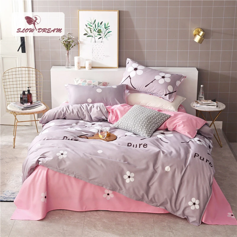 Slowdream Fashion Flower Elegant Grey Bedding Set Light Luxury Duvet