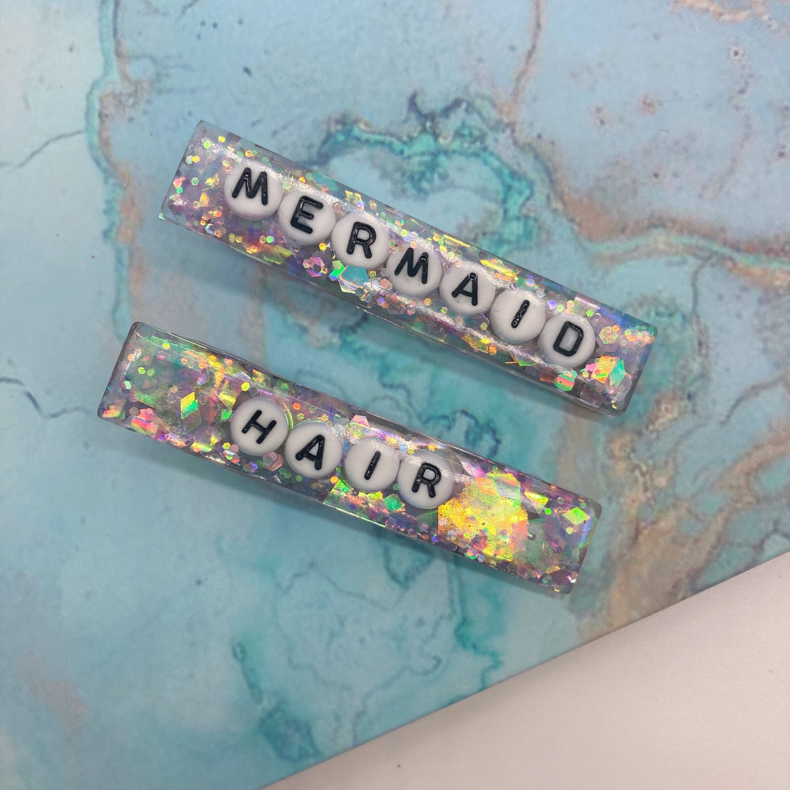 Mermaid resin glitter hair clips Etsy