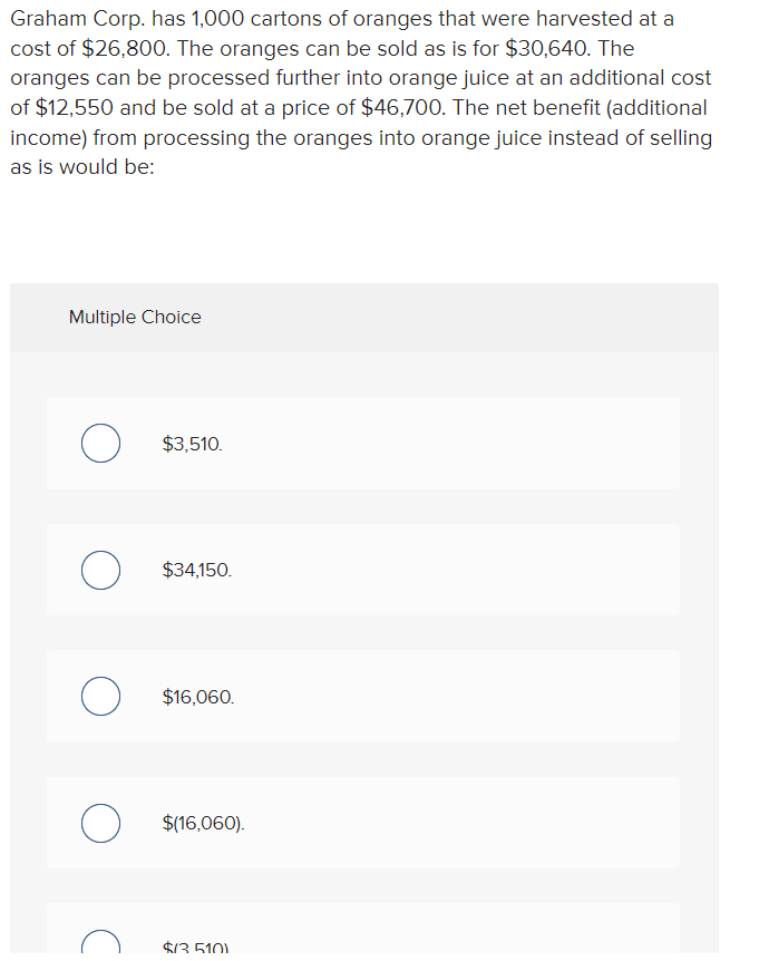 Solved Graham Corp. has 1,000 cartons of oranges that were