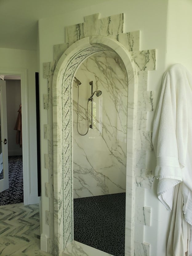 The Granite Gurus Slab Sunday Bianco Antico granite Granite shower Granite Slab Shower Wall If an elegant granite shower fits your style but not your current budget, here. If your bathroom vanity or countertops are granite, choosing a granite shower is a great way to instantly create a cohesive look in your bathroom. Porcelain slab shower walls are a popular choice due to their lightweight nature, variety of colors and styles, limited number of. Granite Slab Shower Wall.