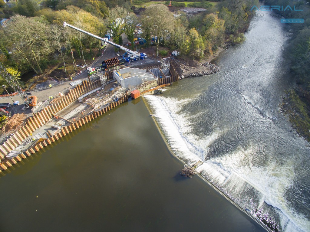 Radyr Weir Hydroelectric Scheme Cardiff, South Wales Aerial