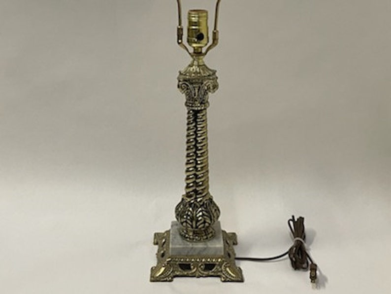 Vintage Golden Column Marble Base Table Lamp Without Shade Etsy