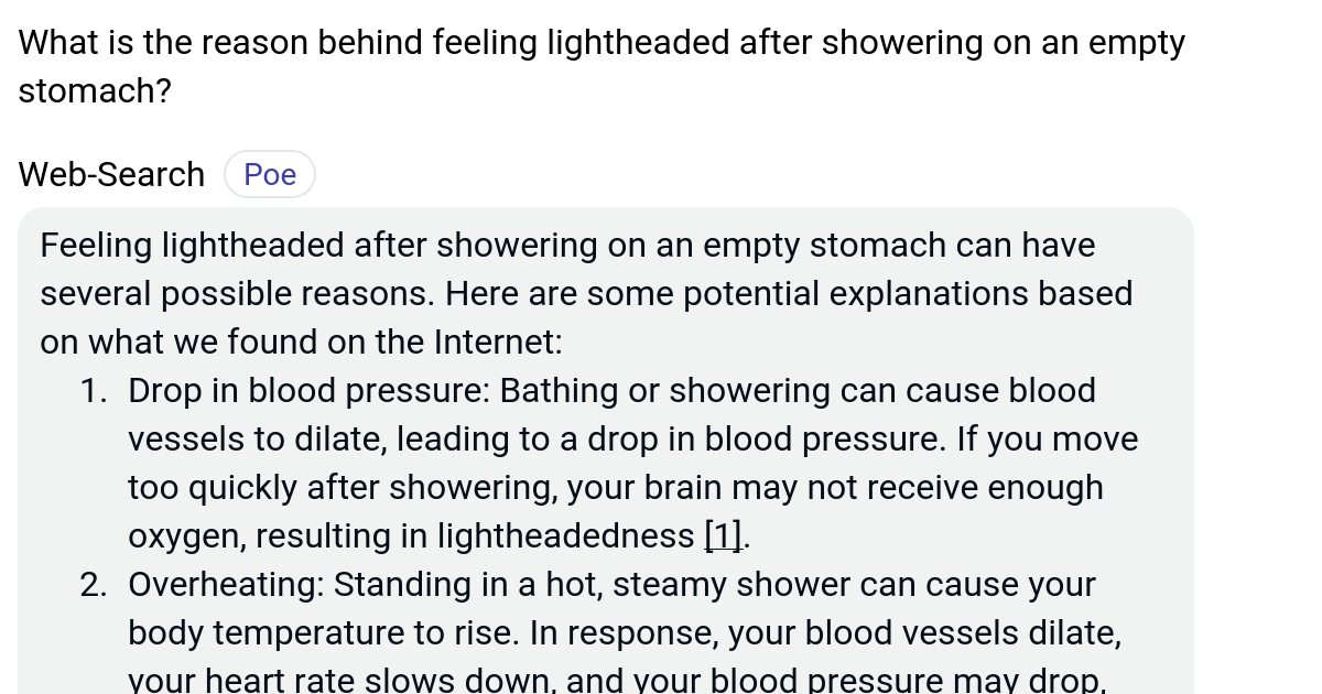 What is the reason behind feeling lightheaded after showering on an empty stomach? Poe