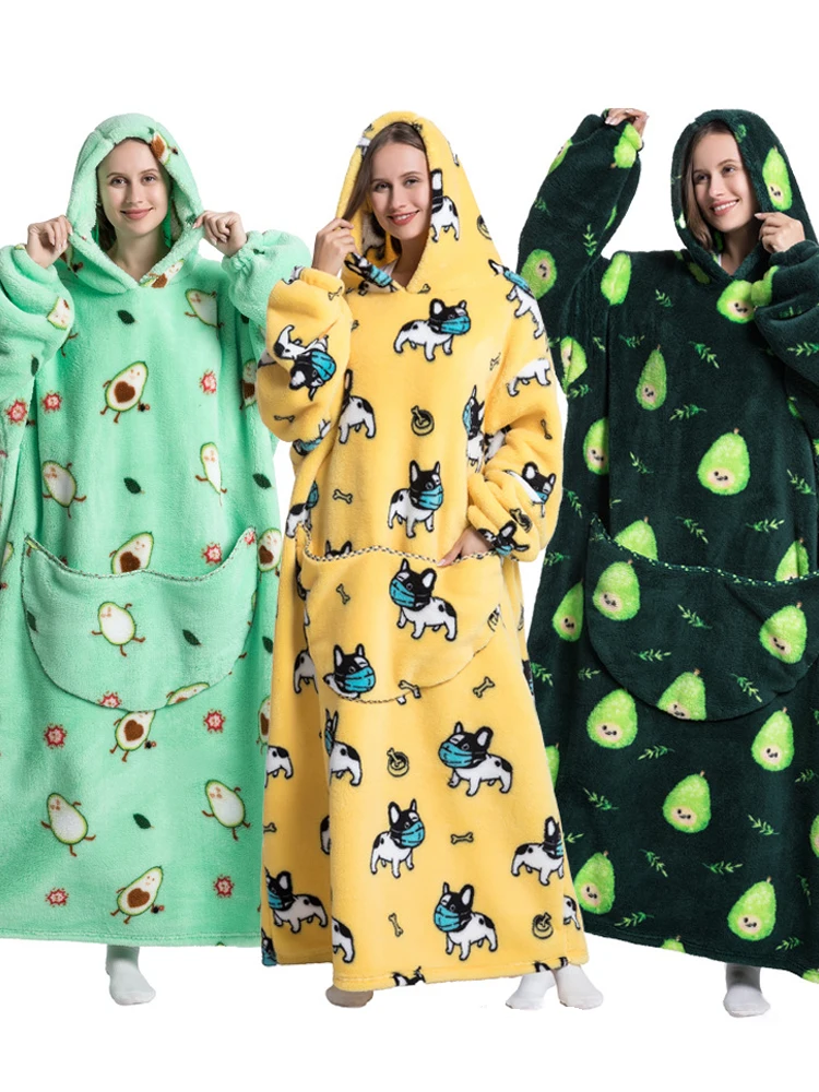 HoodieBlanketWomenOversizedLongBlanketHoodieAutumnWinterFleece