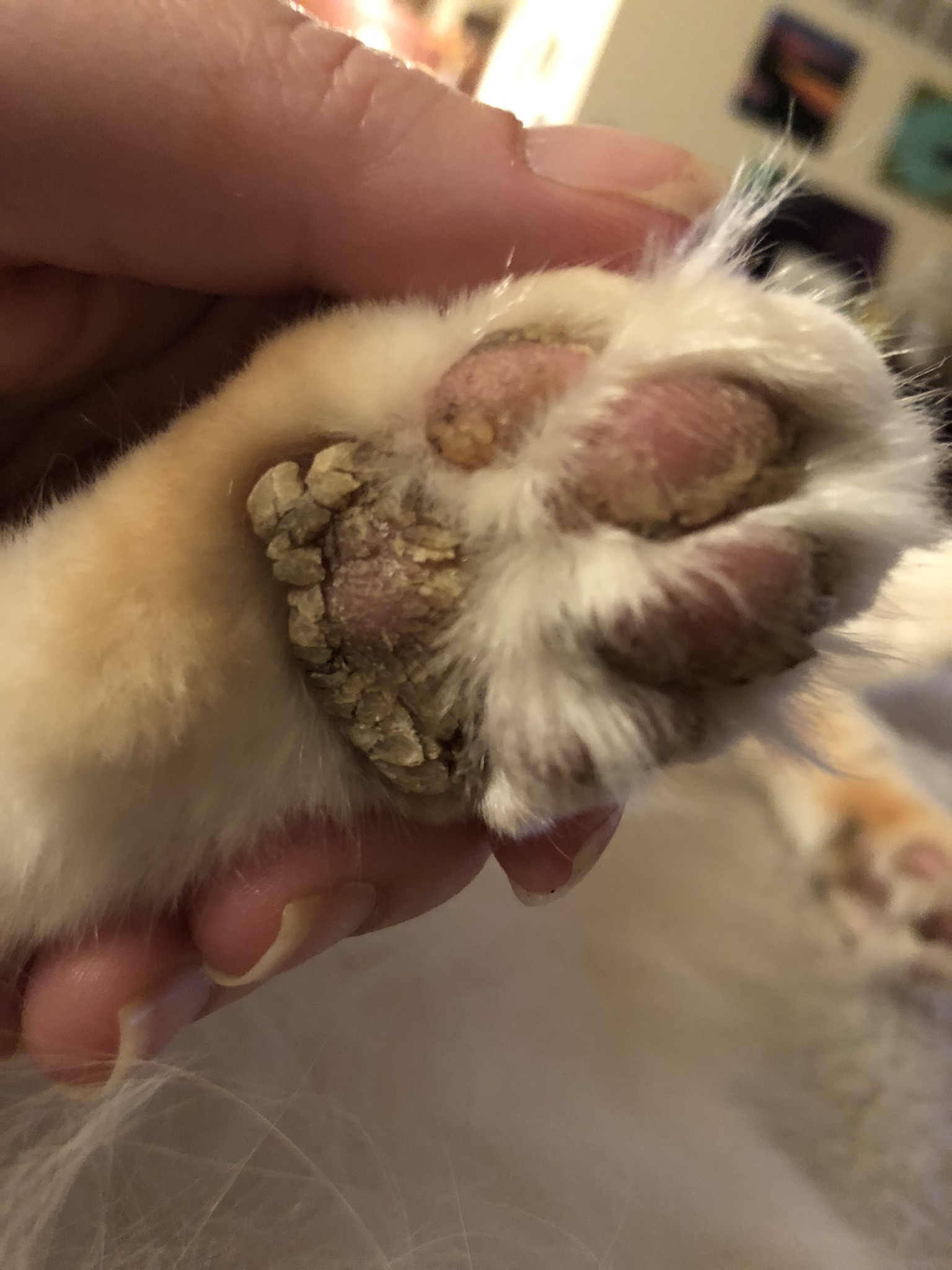 My kitten has dried blood between his pads on his paw and now his toes What Can I Put On My Cats Dry Paws Proper hydration plays a vital role in your cat’s health overall, including the health of their paws. Here are 10 practical tips for caring for your cat's paws. Sometimes, especially in dry weather, your cat’s paw pads might get a bit dry and cracked. Another trend in pet care is the use of cbd products for cats. What causes dry,. What Can I Put On My Cats Dry Paws.