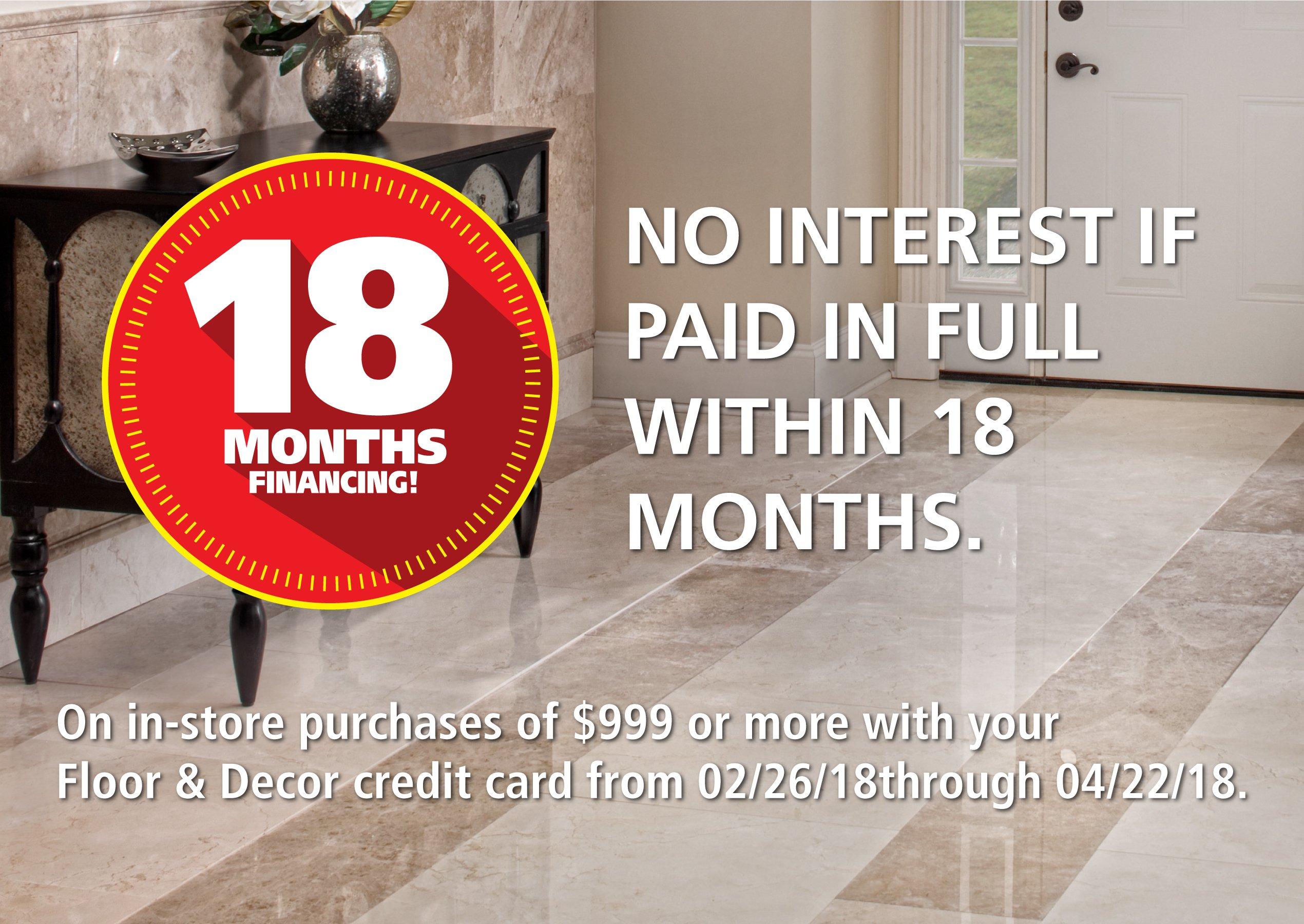 Floor & Decor Last Chance 18 MONTHS FINANCING!* Milled Floor And Decor Financing Visit navigation to register for online access or to use easypay. Through synchrony, the new floor & decor financing program features: Please see our credit center for more details and how to apply. Yes, we offer a floor & decor credit card with financing options. Floor & decor credit card accounts are issued by comenity capital bank. Through synchrony, the. Floor And Decor Financing.