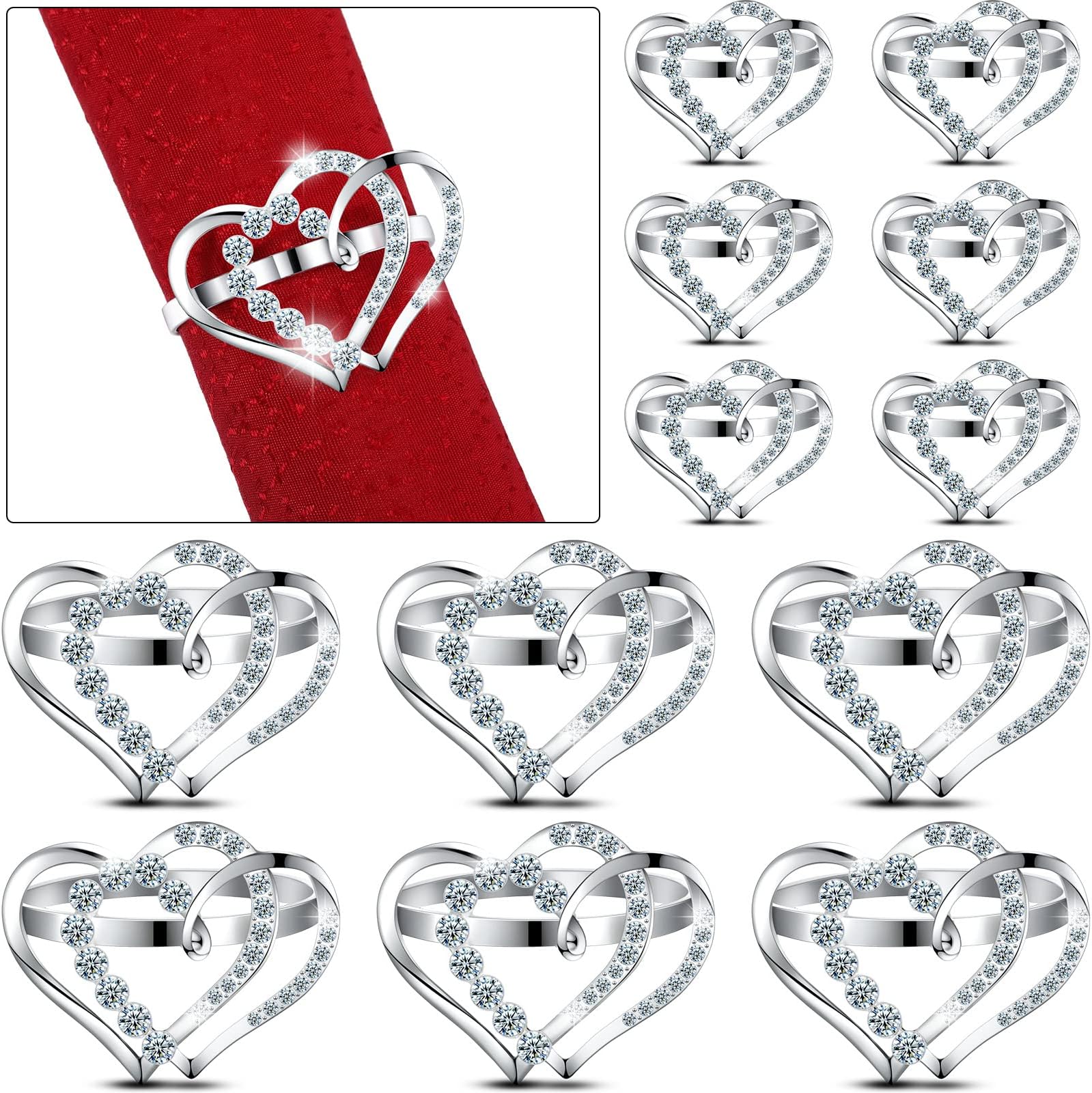 16 Pcs Valentine's Day Napkin Rings and Red Napkins Set, 8 Pcs Silver Rhinestone