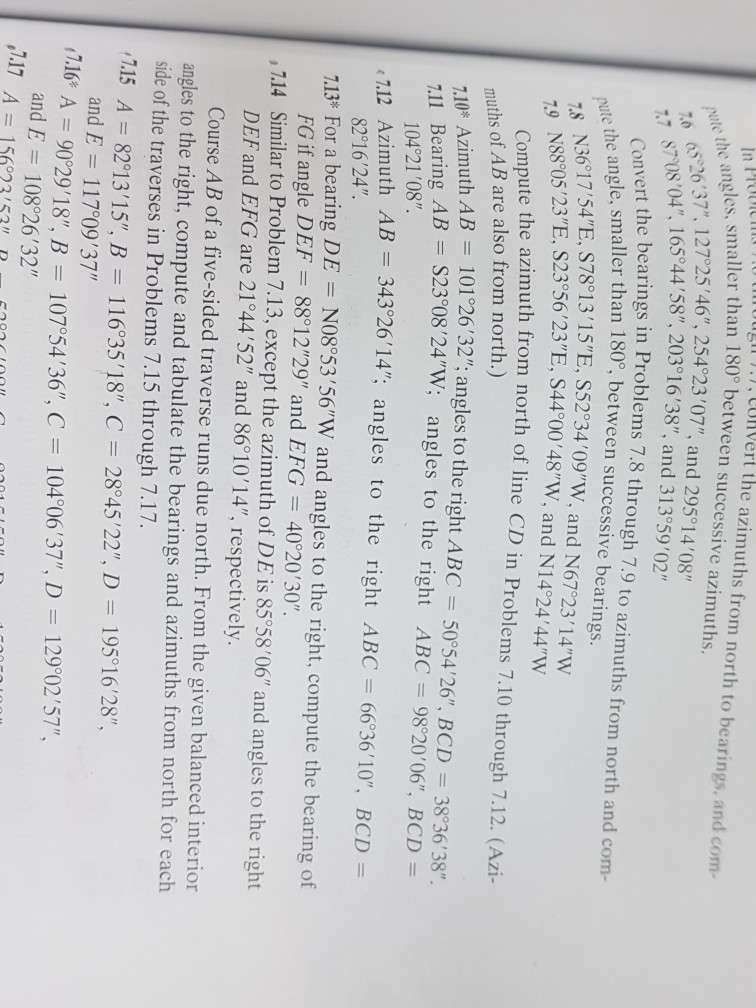 [Solved] [n Problems 7.6 through 7.7, convert the azimuths from north Computing Bearings And Azimuths If all necessary bearings of a traverse are first converted to decimal azimuths, calculations become much easier. Traverse surveys use angular measurements, expressed in bearings (e.g., n 30° e) or azimuths (e.g., 45°), to define. Here, the important features of azimuth. Methods for expressing the magnitude of plane angles are: Azimuths are measured clockwise from north and vary from 0â°. Computing Bearings And Azimuths.