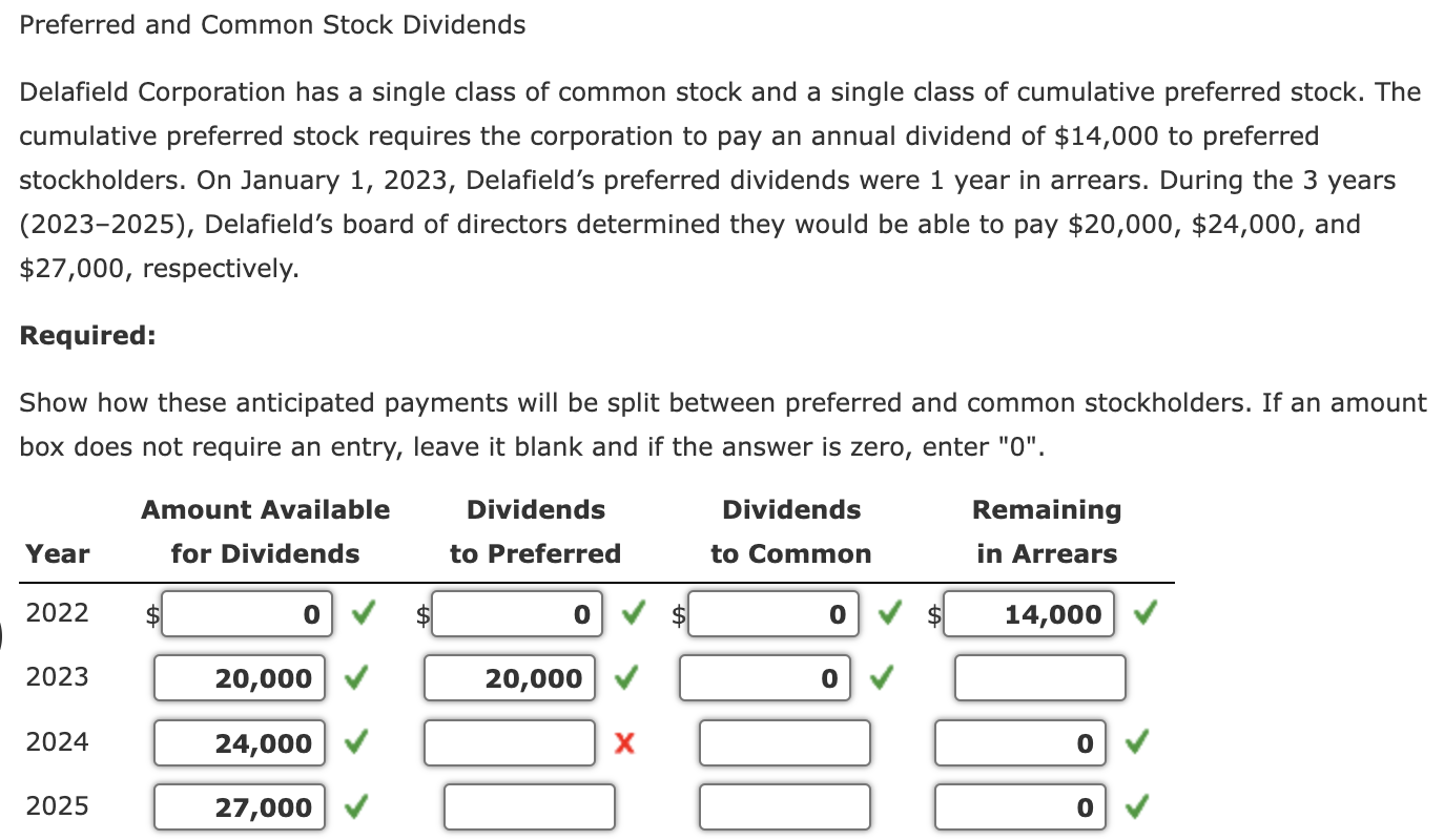 Solved Preferred and Common Stock Dividends Delafield