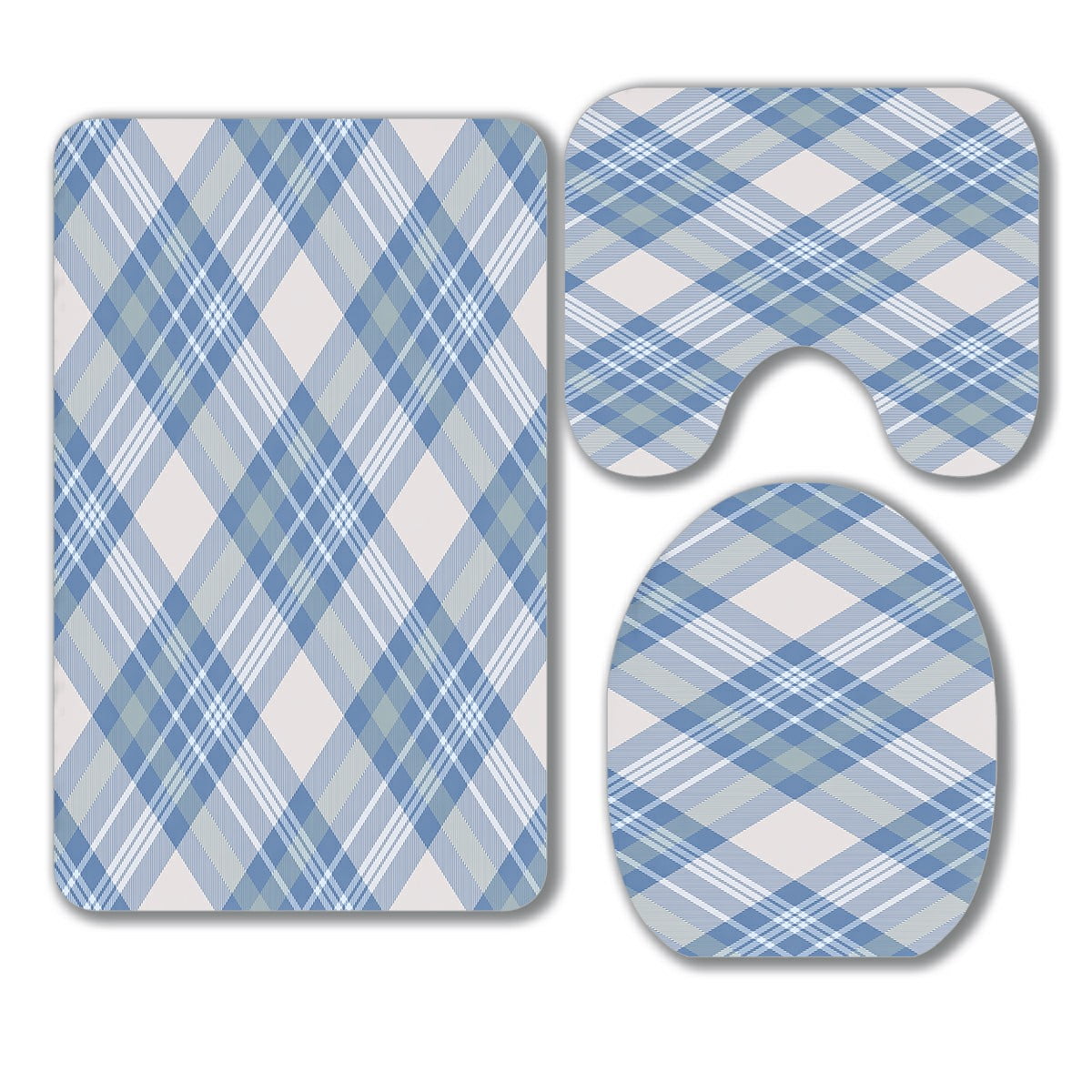 ABPHQTO Tartan Plaid Pattern 3 Piece Bathroom Rugs Set Bath Rug Contour