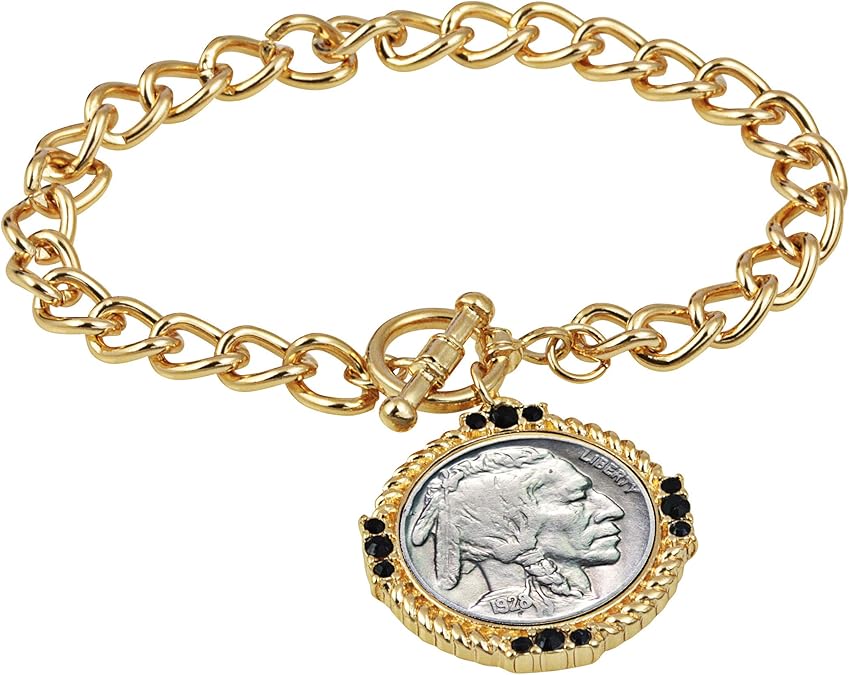 Buffalo Nickel Goldtone Coin Toggle Bracelet Jewelry