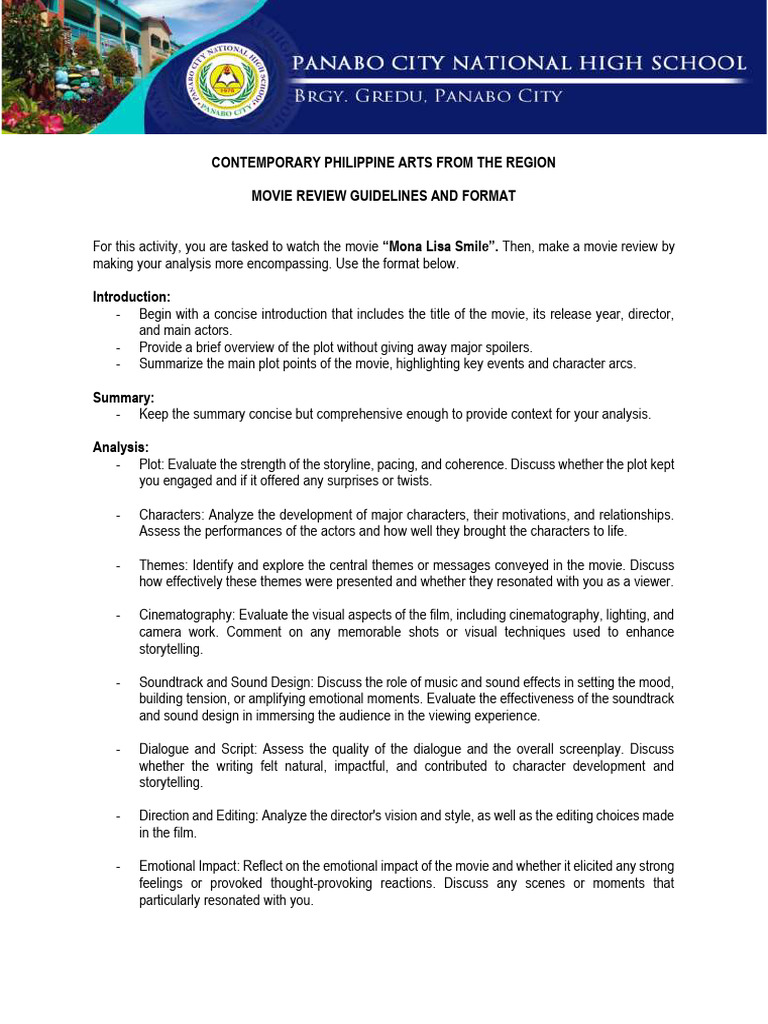 Movie Review Guidelines and Format PDF Cinematography Plot (Narrative)