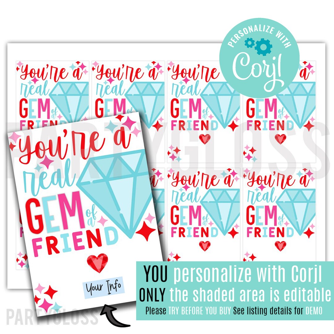 Editable Gem of a Friend Printable Party Favor Tags Gem Ring Gemstone Printable Tag Thank You