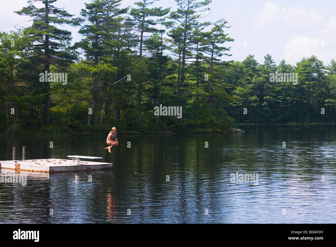 Jumping off Swimming Float Damariscotta Lake, Maine Stock Photo Alamy
