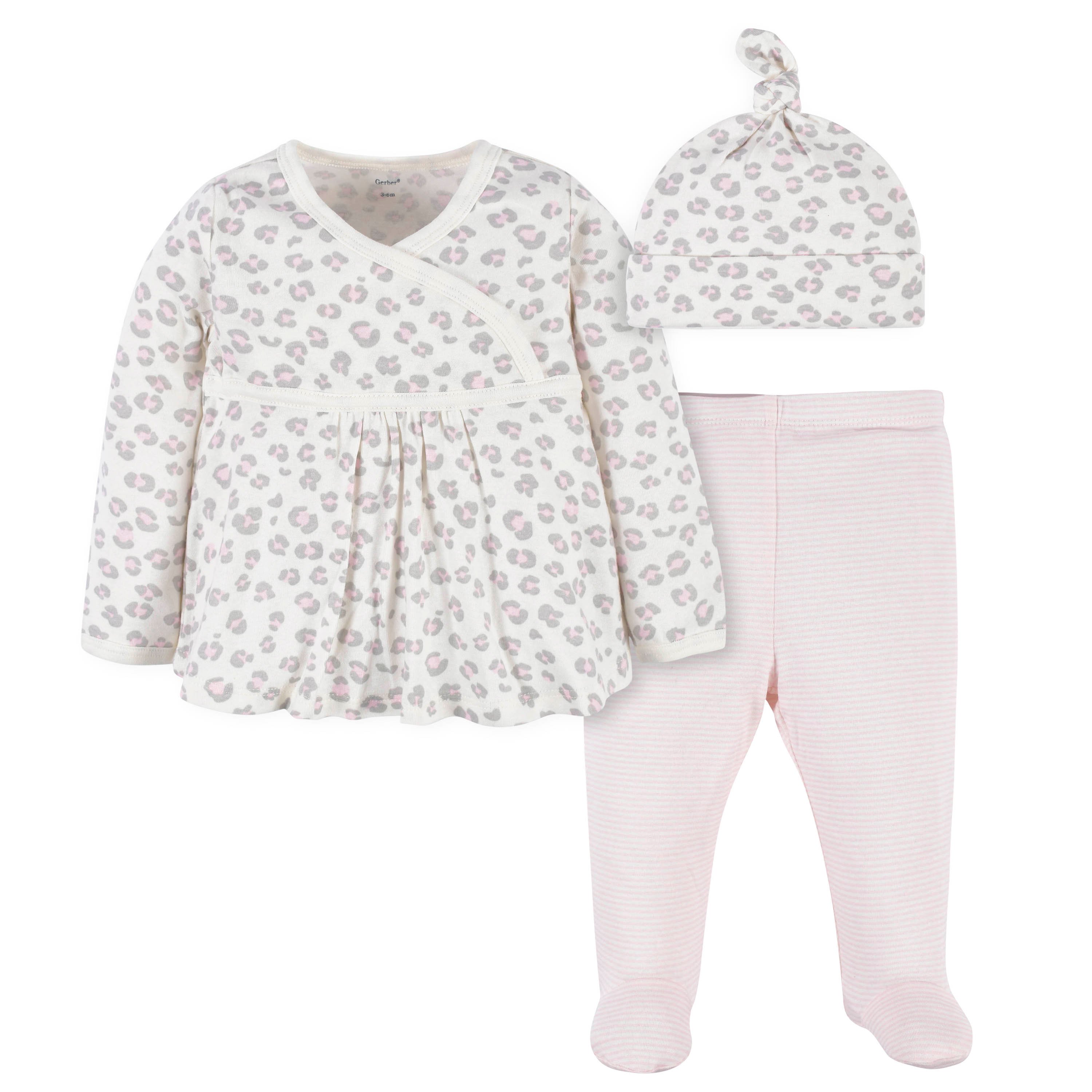 Gerber Baby Girls Leopard Shirt, Footed, Pant, & Cap Set, 3 pc Shop