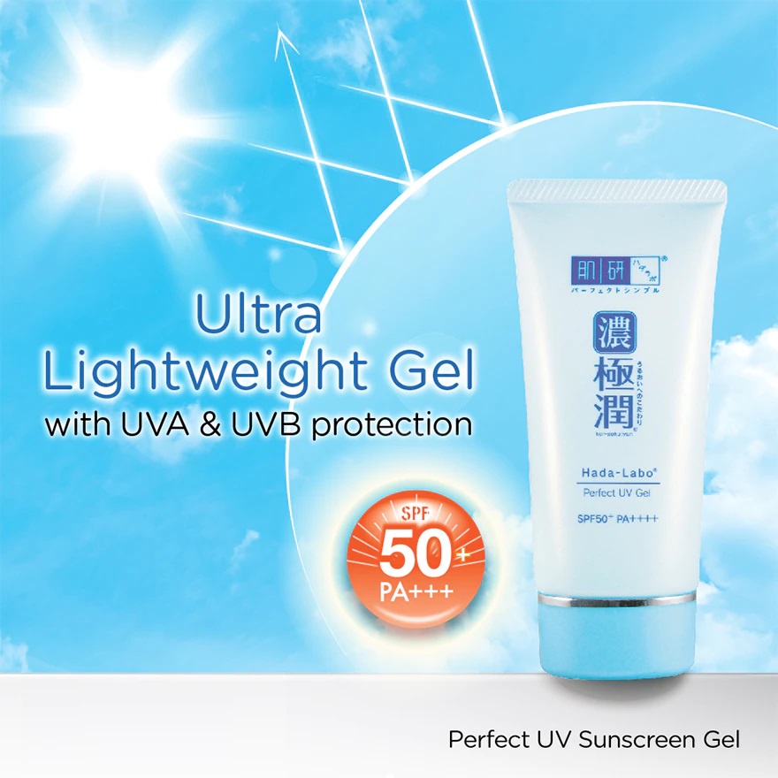 Hada labo Sunscreen Hydrating UV Perfect Gel Moisturizer SPF 50+ PA+ Sunscreen Hada Labo this gentle and lightweight 100% physical sunscreen leaves no white cast as it's easily absorbed into your skin. Zinc oxide blocks uv and resists uva and uvb. The gel texture is light enough to be worn as a moisturizer, beauty serum or makeup base. formulated with a high spf 50+ pa++++ for protection against sun exposure, this lightweight. Sunscreen Hada Labo.