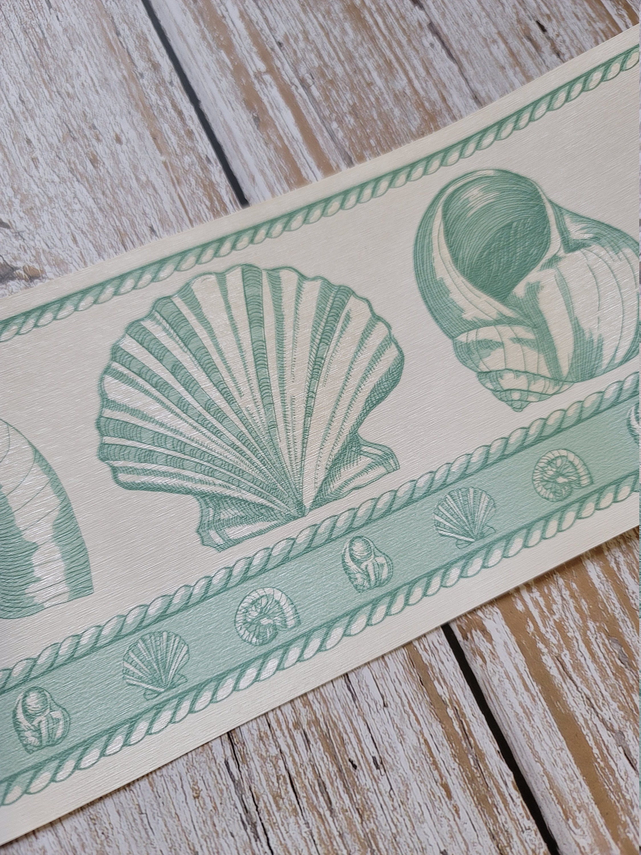 Vintage Wallpaper Border Rolls Seashell Green White Coastal Grandma