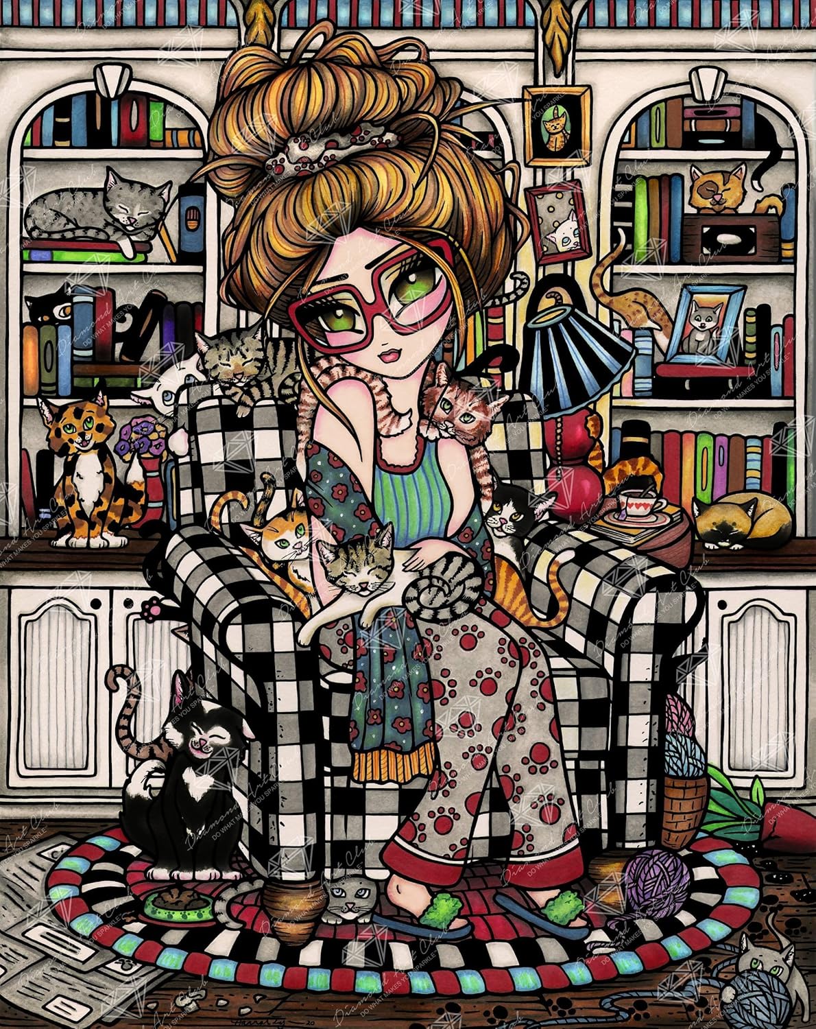 DIAMOND ART CLUB Crazy Cat Lady Square with 55 Colors