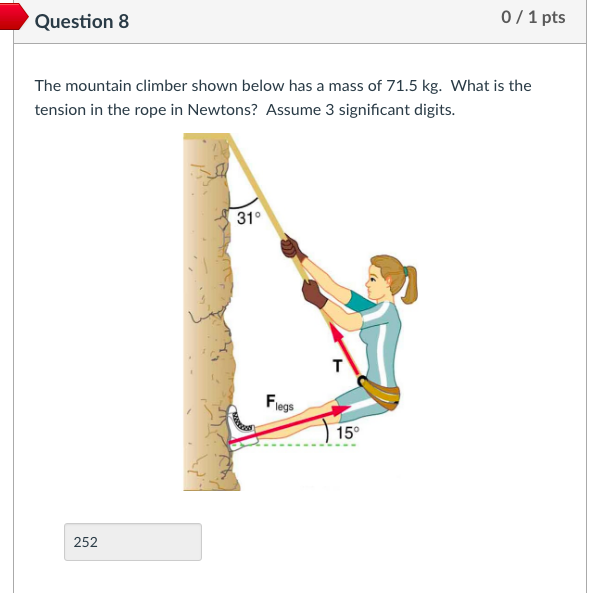 Solved Question 8 0/1 pts The mountain climber shown below