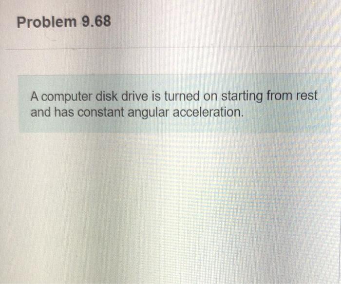 Solved Problem 9.68 A computer disk drive is turned on A Computer Disc Drive Is Turned On Starting From Rest If it took 0.0865 s for the drive to make its $second$ complete revolution, (a) how long did it. A computer disk drive is turned on starting from rest and has constant angular acceleration. A computer disk drive is turned on starting from rest and has constant angular acceleration. And has constant angular acceleration. If it took 0.690s for the. A Computer Disc Drive Is Turned On Starting From Rest.