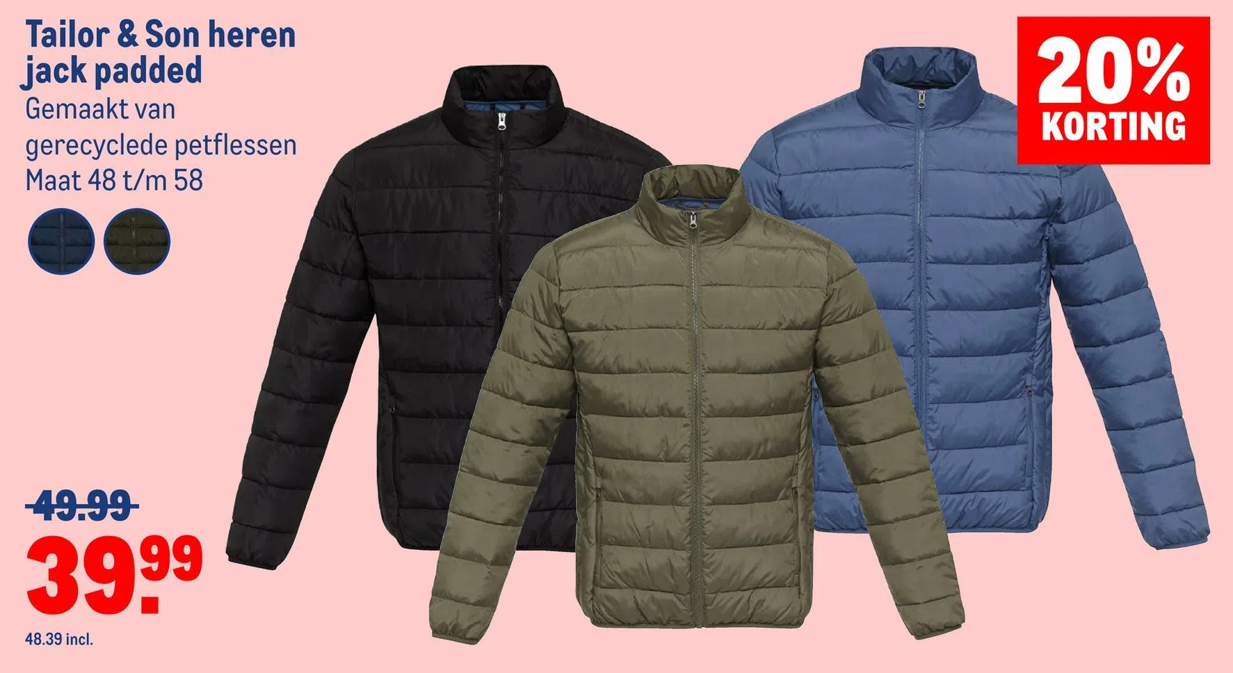 Tailor & son heren jack padded aanbieding bij Makro