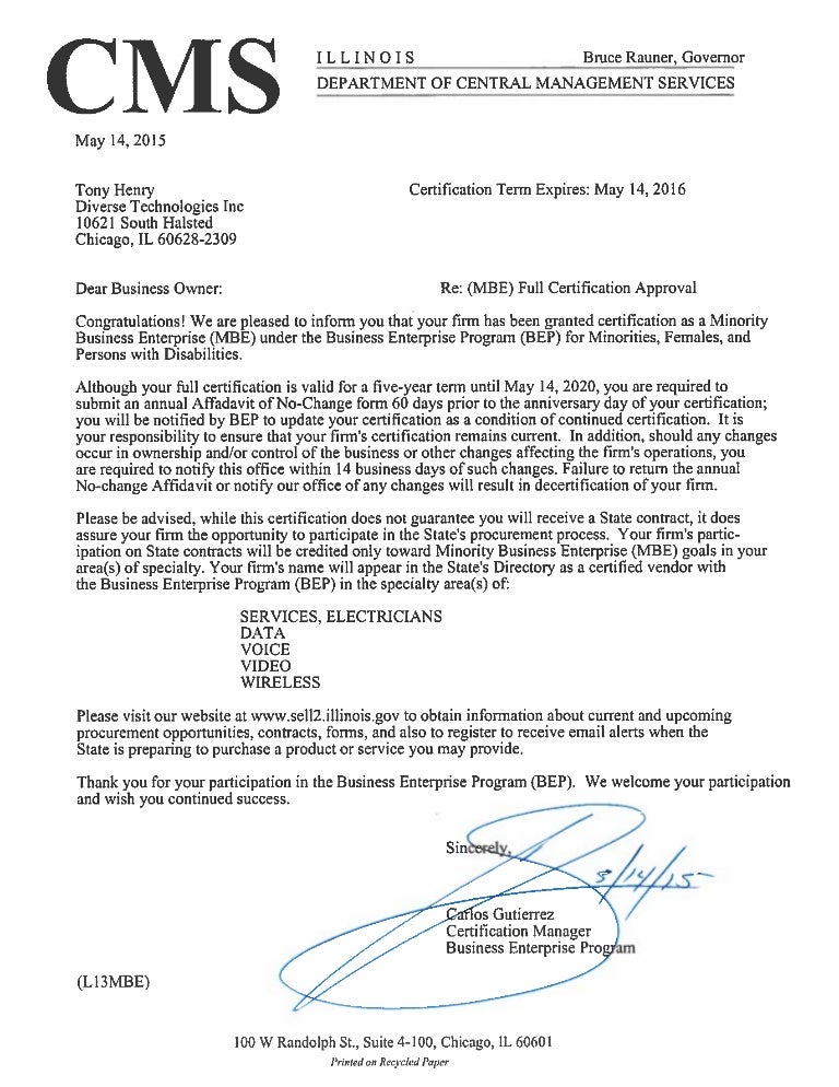 Diverse Technologies Inc CMS Certification