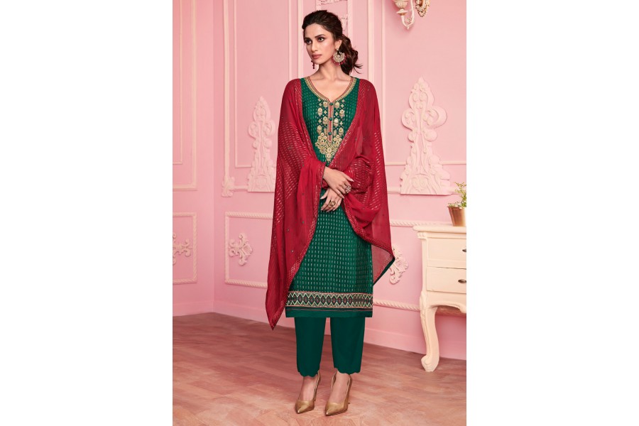 Dark Green Faux Pant Suit Green Heavy Embroidred Work Green Georgette Pant Suit The lovely embroidered, sequins and zari work a substantial. Women magnificence is magnified tenfold in such a green faux georgette pant style suit. The green georgette embroidered narrow straight pant suit is a perfect choice for party wear, including sangeet events in a wedding. • green georgette straight palazzo pant suit. The green faux georgette embroidered sequins straight pant suit. Green Georgette Pant Suit.