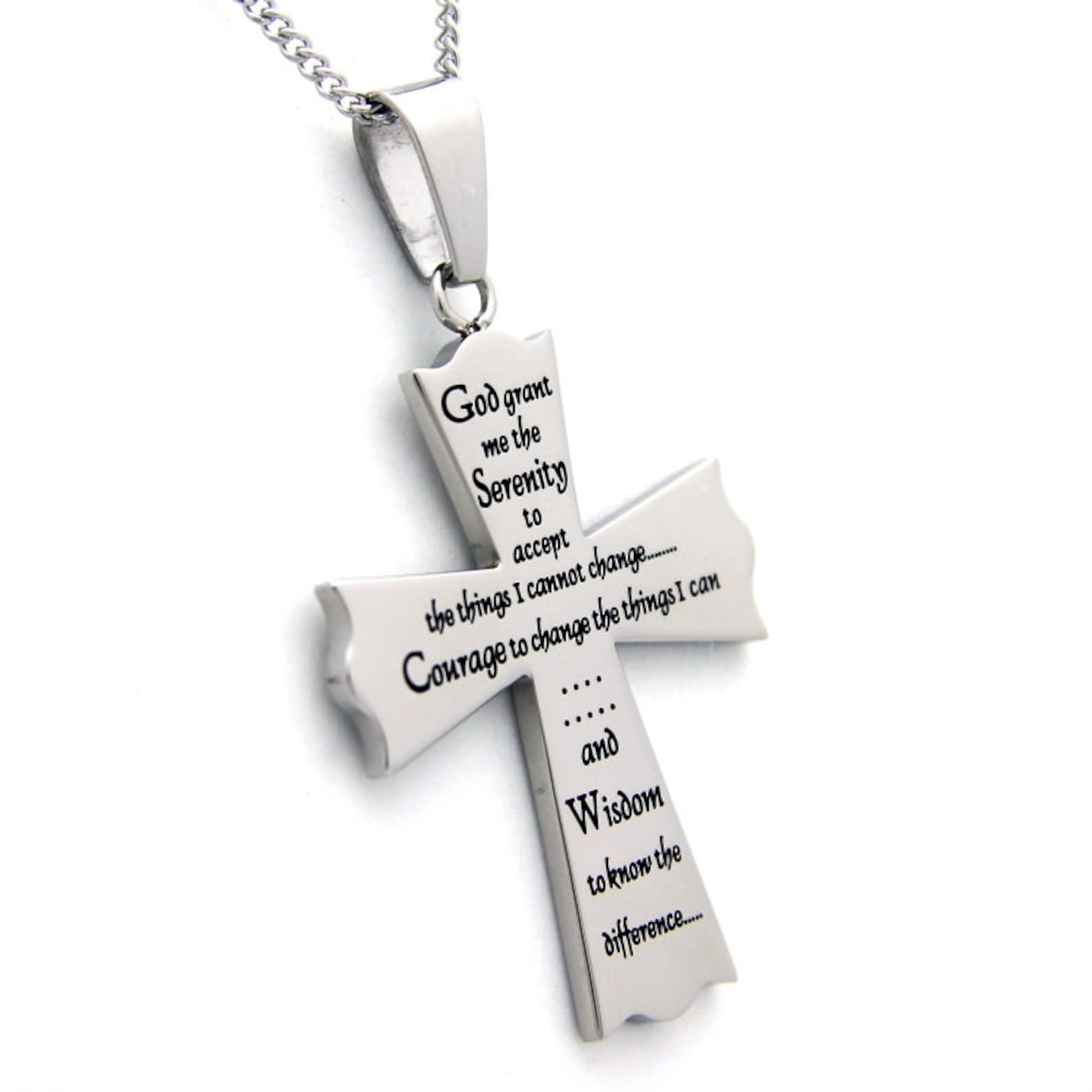 Serenity Prayer Pendant Stainless Steel Cross Necklace Etsy