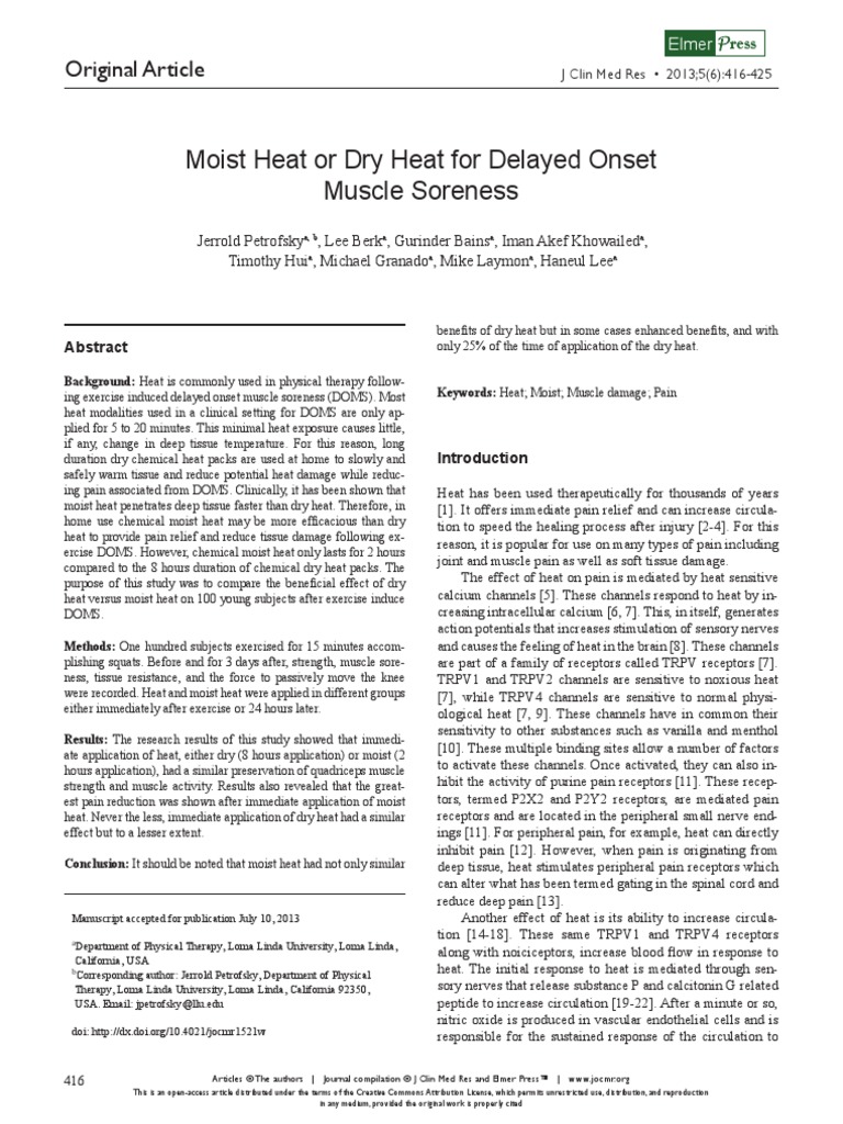 Moist Heat or Dry Heat For Delayed Onset Muscle Soreness Original