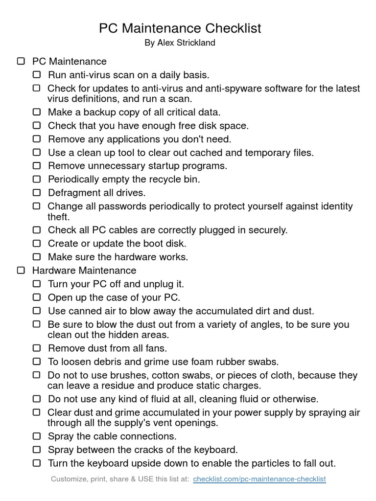 PC Maintenance Checklist PDF