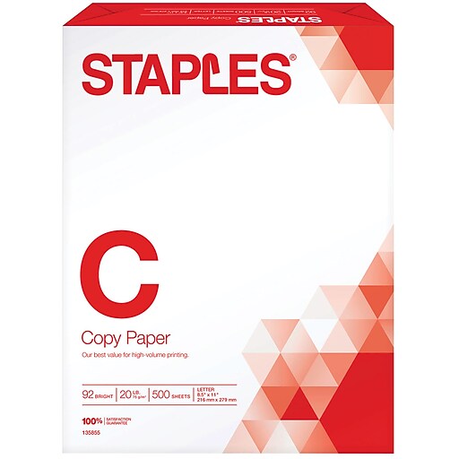 Staples® Copy Paper, 8 1/2" x 11", 500/Ream (135855/135855WH) Staples