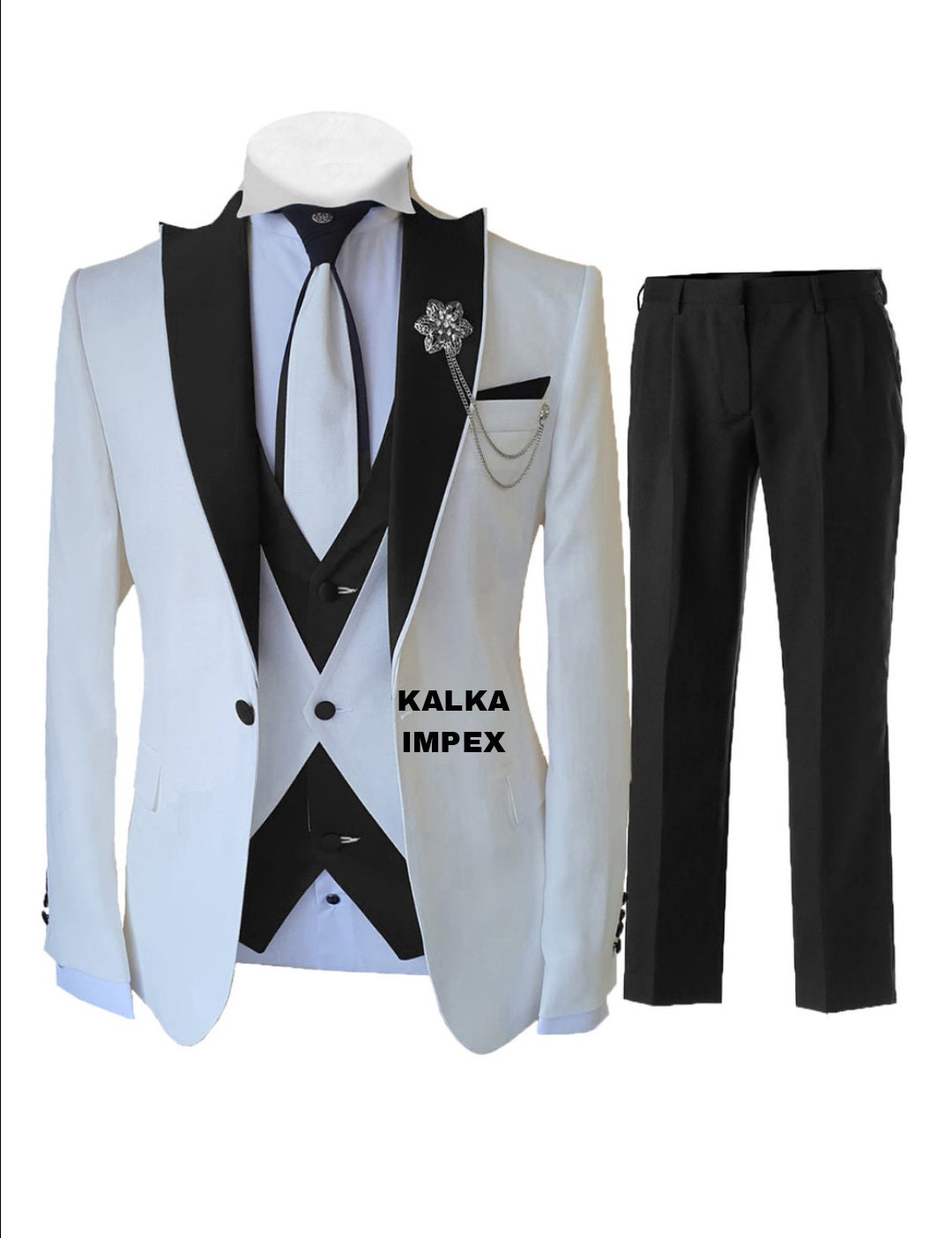 White Black 3 Piece Wedding Suit Jacket for Men Etsy