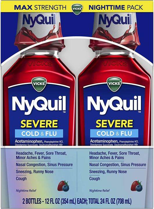 NyQuil Nighttime Cold and Flu Relief Liquid 354ml Wealzin Nyquil Cold & Flu Nighttime Relief When you have a cold, turn to vicks nyquil cold & flu nighttime relief medicine to relieve your sneezing, sore throat, headache, minor aches and pains, fever, runny nose, and cough to help you get the rest. Nyquil™ severe maximum strength cough, cold & flu nighttime relief liquid provides fast, powerful relief of 9 symptoms of colds and flu, including.. Nyquil Cold & Flu Nighttime Relief.