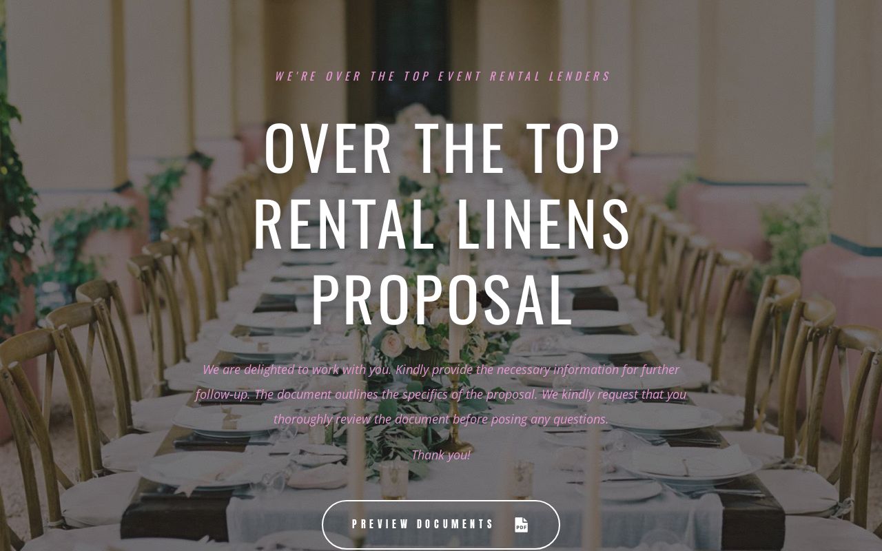 Over the top rental linens Proposal