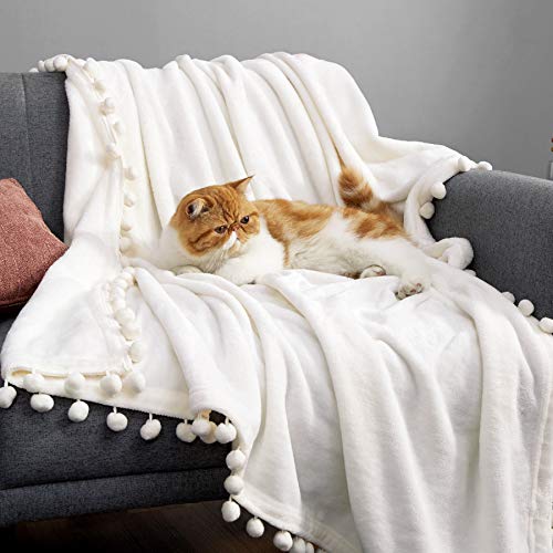 Bedsure Fleece Throw Blanket Pom Pom Blankets Cream Throw Blanket for