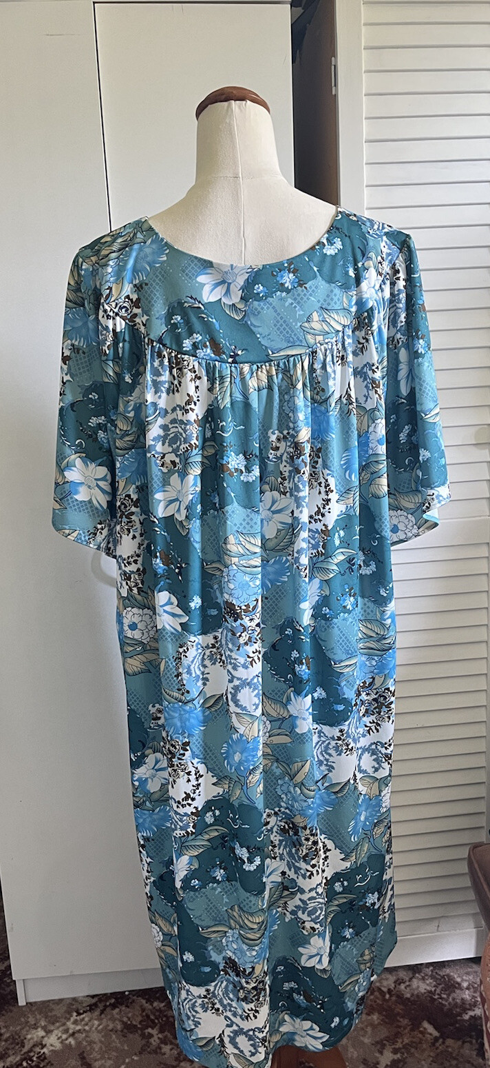 ANTHONY RICHARDS Vintage Blue Floral Mumu Maxi House Dress Sz 3XL eBay