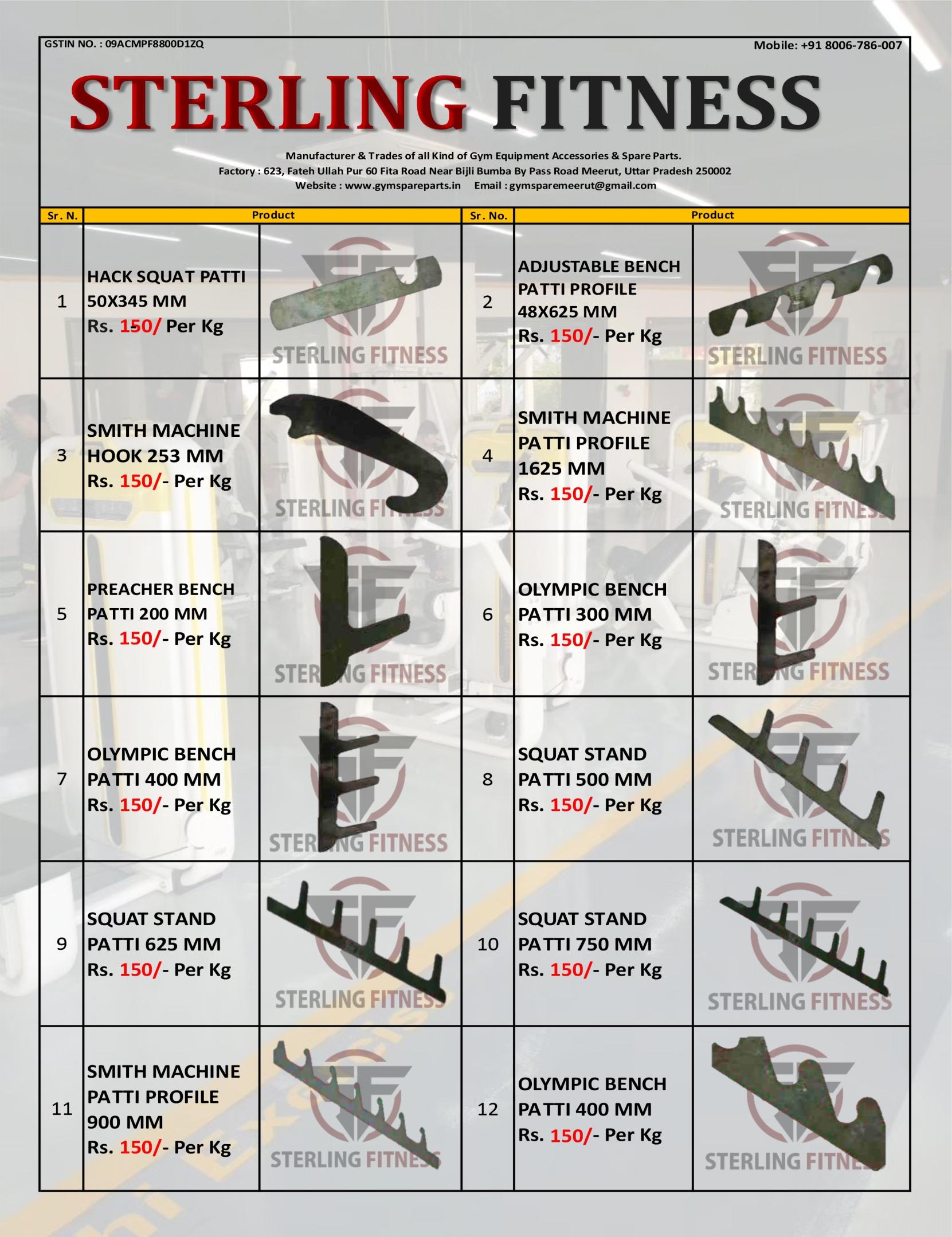 Gym Spare Parts Clip Patti Profile Catalogue for gym 8006786007 by Gym