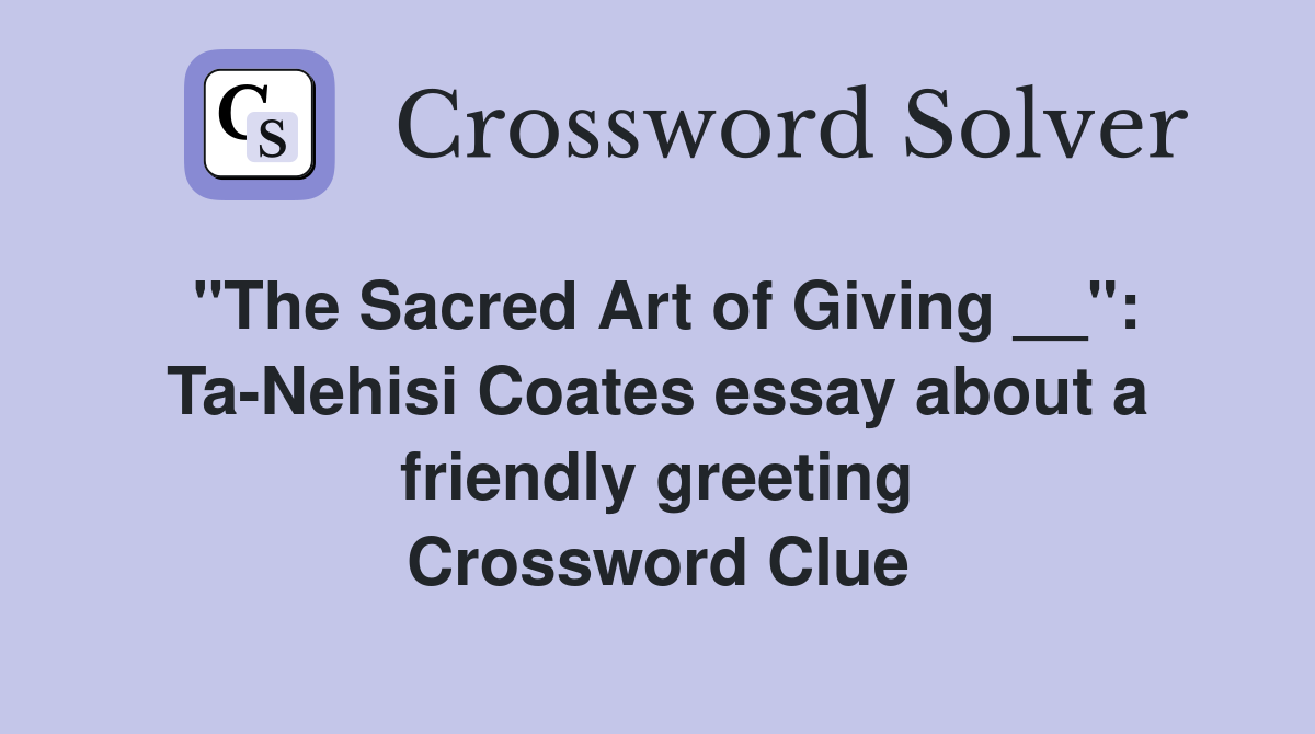 "The Sacred Art of Giving __" TaNehisi Coates essay about a friendly