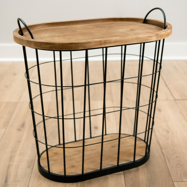 Black Wire and Natural Wood Basket Side Table Kirklands Home