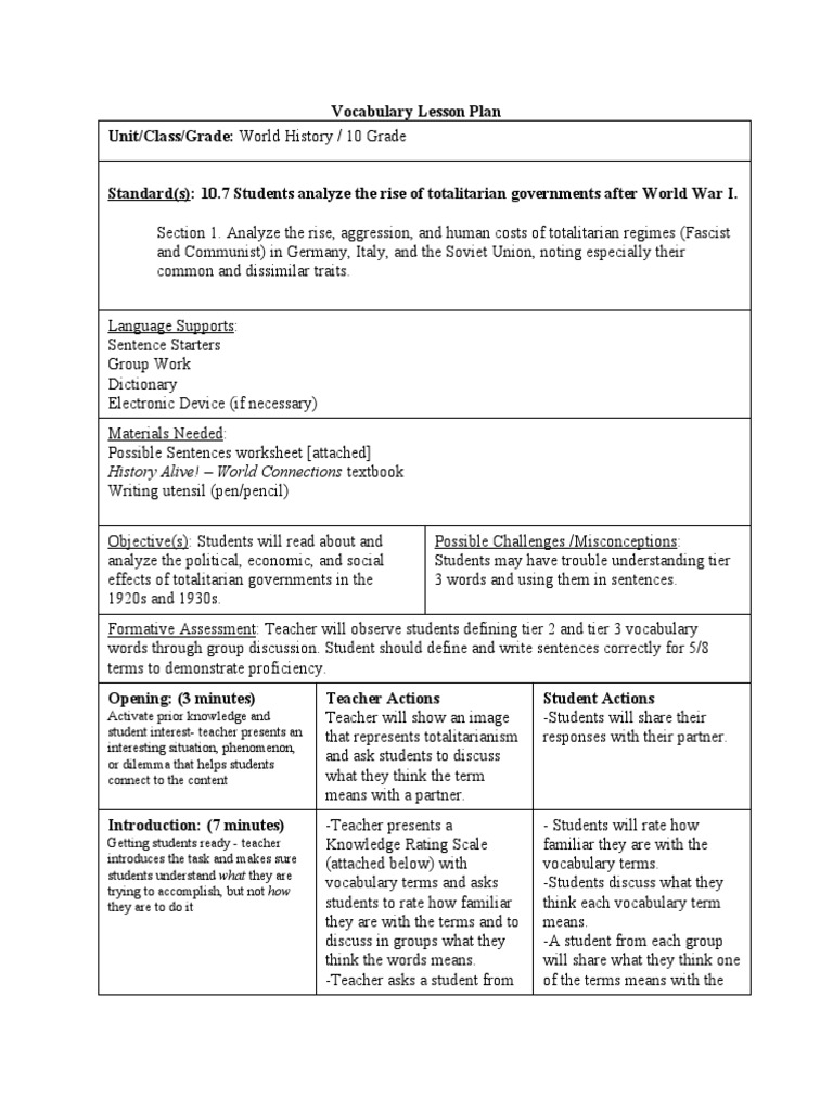 Vocabulary Lesson Plan Unit/Class/Grade History Alive! World Connections Textbook PDF