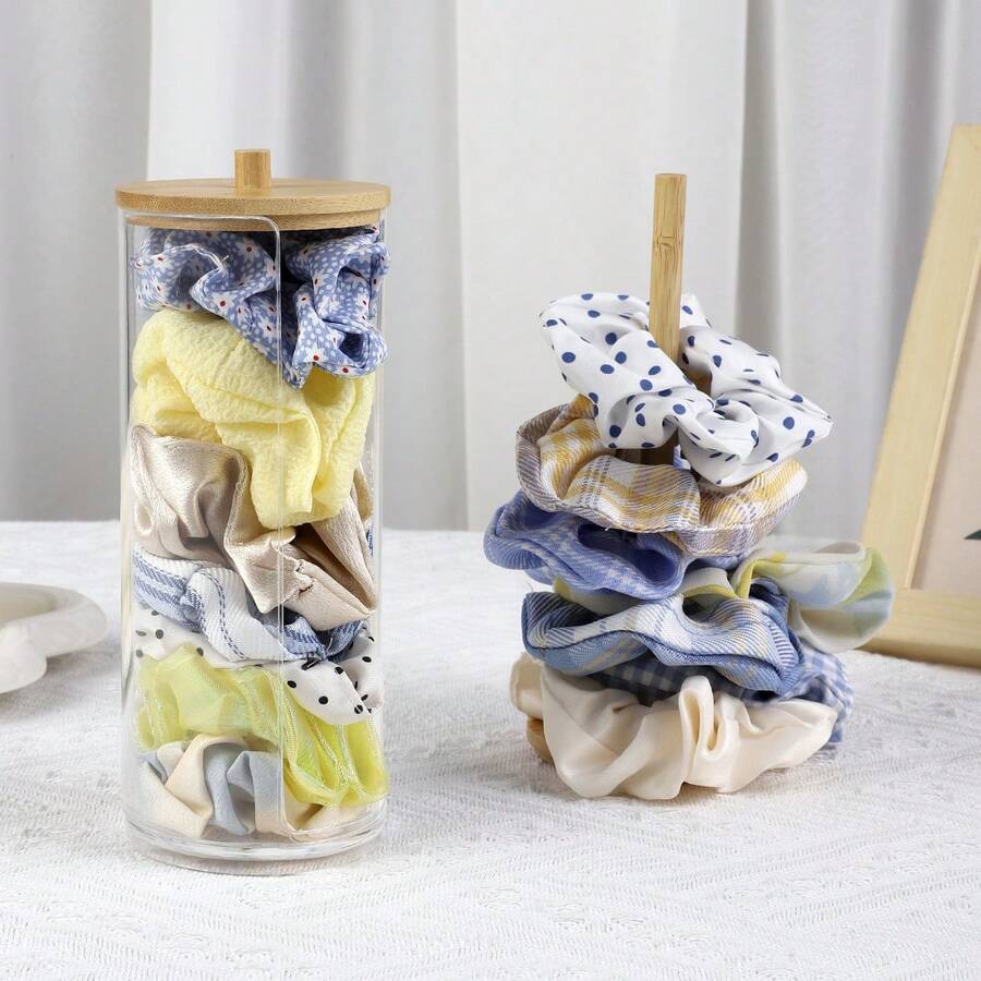 2 Pcs/Set, Round Stand And Bamboo Shelf, Hair Tie Tray With Bamboo Lid