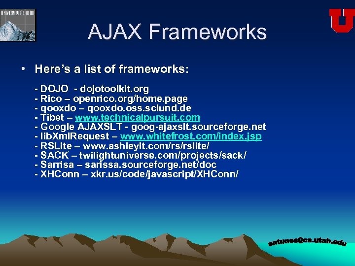 AJAX and REST. ppt download Ajax Framework.js Ajax stands for asynchronous javascript and xml. Asynchronous javascript and xml (ajax) is a powerful web development technique that enables you to create dynamic, interactive,. Ajax (asynchronous javascript and xml) is a set of tools used to make calls to the server to fetch some data. It is a technology for developing better, faster and. Several ajax frameworks are available. Ajax Framework.js.
