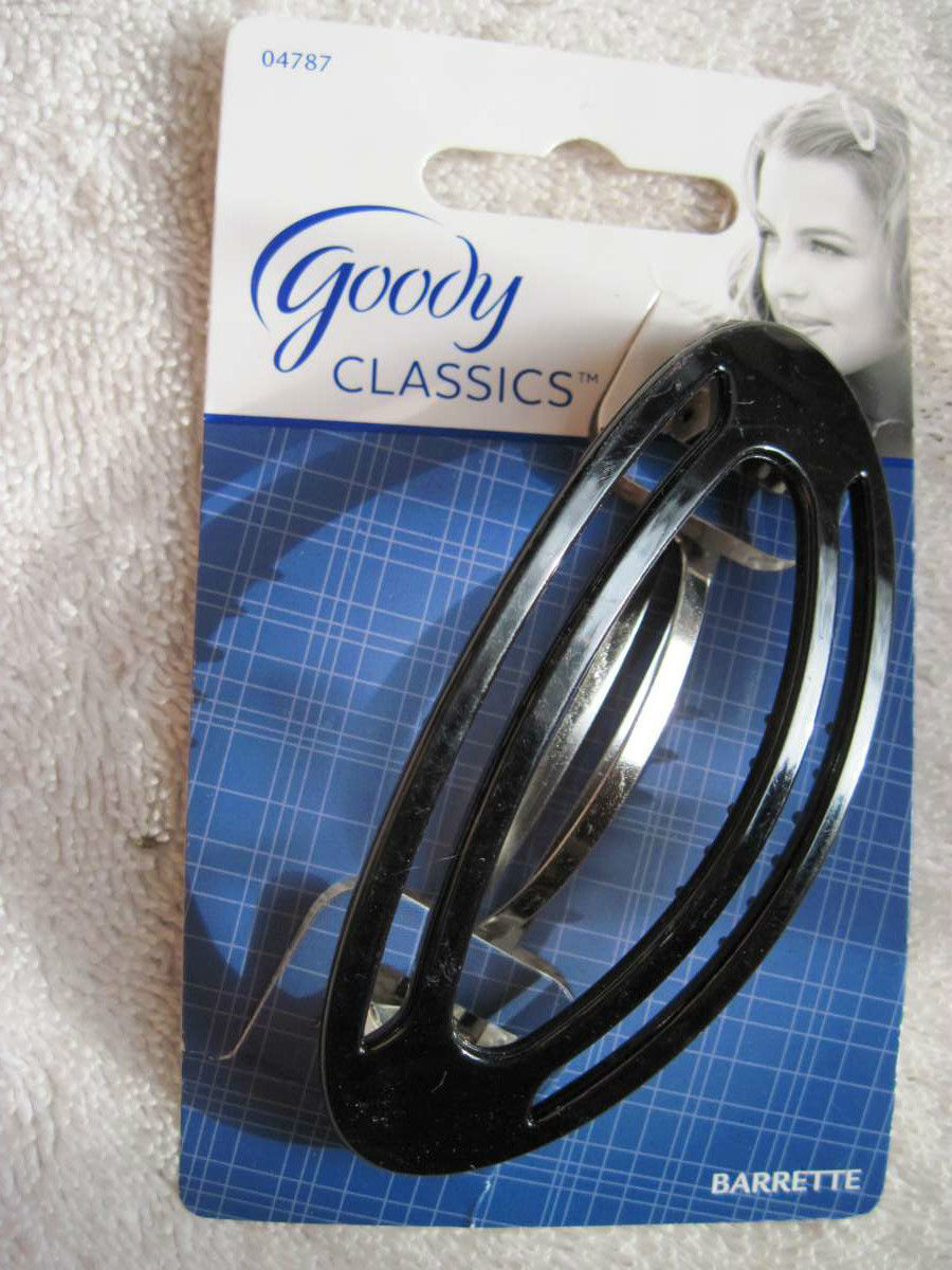 Goody Black Plastic Open Round Oval Hair Barrette Metal Back Closure