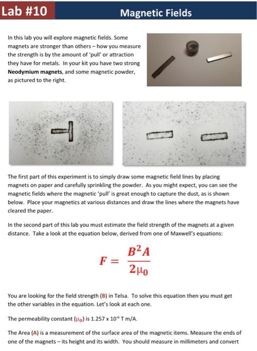 The Field in a Slinky > Experiment 26 from Physics with Vernier Magnetic Field Lines Lab Experiment Magnetic fields of a bar magnet. Calculate the magnitude and direction of. View the magnetic field lines or use a meter to show the direction and magnitude of the current. You can also play with electromagnets, generators and transformers! This is an extremely easy experiment to do, which allows us to appreciate the magnetic field lines of a natural magnet.. Magnetic Field Lines Lab Experiment.